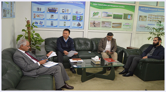 The participants were welcomed by Chairman, PCRWR and briefed about the current irrigation practices, irrigation scheduling and use of the moisture sensors installed at the farm. The delegation comprised of Mr. Ma Zhiwei & Dr. Shah Fahad Rahim from BIDR, China and Mr. Zubair Warraich from the Warm Water Advisory group.