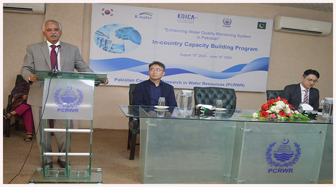PCRWR in Collaboration with Ministry of Climate Change, Government of Pakistan and Korea International Cooperation Agency (KOICA) executing the project “Enhancing Water Quality System to achieve SDG 6 in Pakistan”. As per approved PC-I of the project Pakistan Council of Research in Water Resources (PCRWR) is organizing the local training program for lab workforce of PHED Punja and Khyber Pakhtunkhwa at National Capacity Building Institute(“NCBI”) of PCRWR. The In-country training course is going to start on August 15, 2023 and ends up on June 14, 2024. In this context the opening ceremony of the course was organized on August 15, 2023.