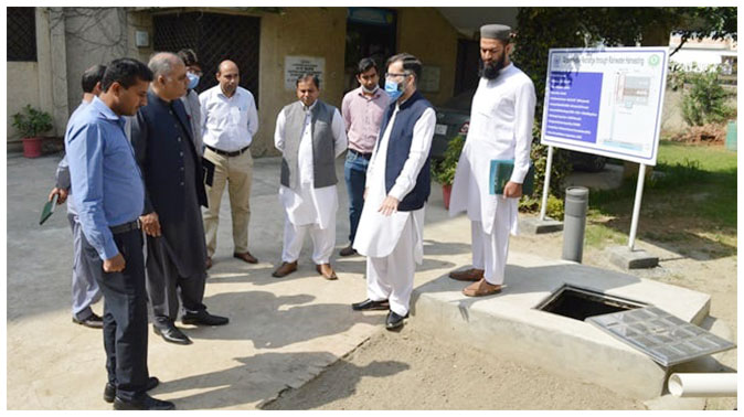 Mr. Haroon Kamal Hashmi, Vice Chairman WASA Rawalpindi visited PCRWR Headquarters, Islamabad on Friday, October 8, 2021. The WASA Rawalpindi team highlighted various drinking water supply challenges being faced in Rawalpindi. Dr. Muhammad Ashraf, Chairman, PCRWR briefly introduced the recent initiatives of the council regarding water resource management and rainwater harvesting in Islamabad Capital Territory. The experts of PCRWR introduced WASA team to various solutions towards achieving sustainable groundwater management. The WASA team were also demonstrated the practical models of rainwater harvesting systems for multiple uses piloted by PCRWR at its premises. The vice Chairman, WASA-Rawalpindi, appreciated the good work conducted by PCRWR and requested to extend technical cooperation for groundwater investigations, rainwater harvesting, water quality assessment, water metering as well as capacity building of WASA staff. Chairman, PCRWR assured full support of the Council in managing drinking water supply challenges of Rawalpindi. Moreover, it was decided that a memorandum of Understanding (MOU) will be signed between two organizations for further strengthening of mutual cooperation to address water related issues of Rawalpindi.