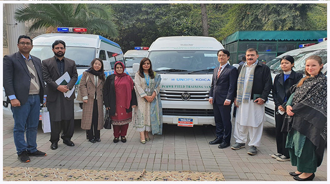 Vehicles Handover Ceremony of the project “Capacity Building on Water Quality Monitoring and SDG 6 (6.1) Reporting (KOICA/MoCC)” on 25th January 2024 in the Office of Chief Minister, Peshawar
