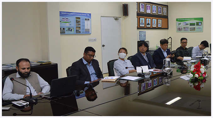 A Delegation of Korean Experts Visited PCRWR Headquarter under the Project “Establishment of Groundwater Recharge/Rainwater Harvesting Ponds for Flood prevention, Mitigation and Preparedness in districts Multan and Muzaffargarh of Punjab province of Pakistan” On 23rd October, 2023. Dr. Hifza Rasheed, Director General, PCRWR briefed the Korean delegation about the current research activities and technologies/techniques developed by PCRWR. The Korean experts visited the Recharge well, Wetlands for wastewater treatment and Rain water harvesting system installed at PCRWR and Kachnar park. In this connection the delegation with PCRWR’s experts will visit the Multan and Muzaffargarh to check the feasibility for the installation of Rainwater Harvesting Ponds for Flood prevention.